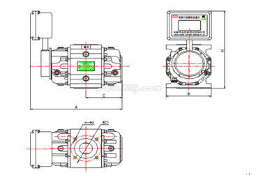 在特殊情況下可采取下進上出或左進右出,但訂貨時需特殊說明,流量計出廠時標準產品為上進下出。安裝流量計時應設置前后閥門和旁通管路,以保證維修保養(yǎng)時,不必停氣。圖6、圖7、圖8分別為A、
